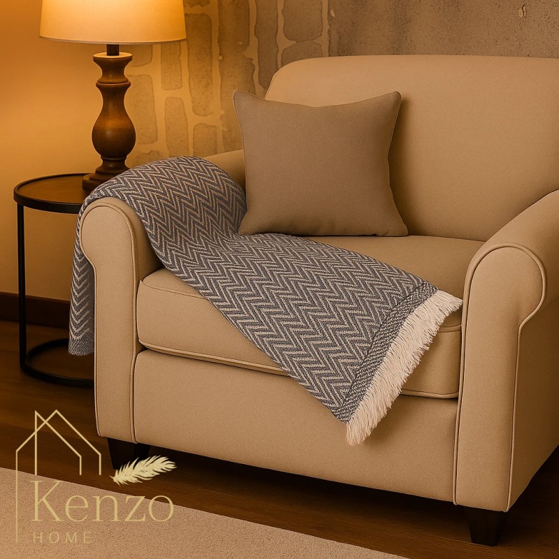 کالای خواب|شال مبل پالاس ابعاد 200*170 مدل زیگزال رنگ قهوه ای روشن
