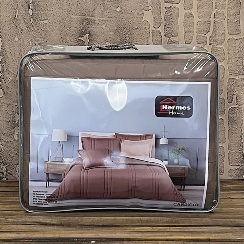 سرویس لحاف دونفره 7تکه مدل candy رنگ نسکافه ای